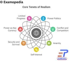 - Power is the central concept in Realism. Politics and power are inseparable—“all politics is power politics.” States seek power not merely to expand but primarily to secure themselves and deter threats in an anarchic world. Power is both relative (measured against others) and relational (dependent on interactions).
